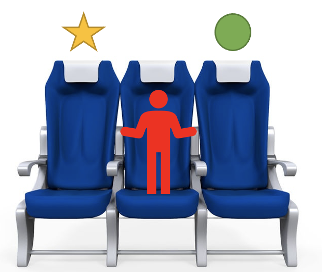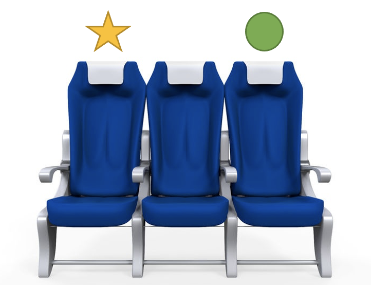 For this example, we can use the image below, having the star seat represent your seat and the green dot as where the first passenger’s seat is.