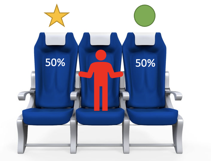 The next person to enter the plane is then given an option, to either sit in your chair, or the first passenger’s chair. This leaves a 50% chance that your seat will be open for when you get on the plane. For this outcome, we will say they choose the first passenger’s seat, leaving your seat open.