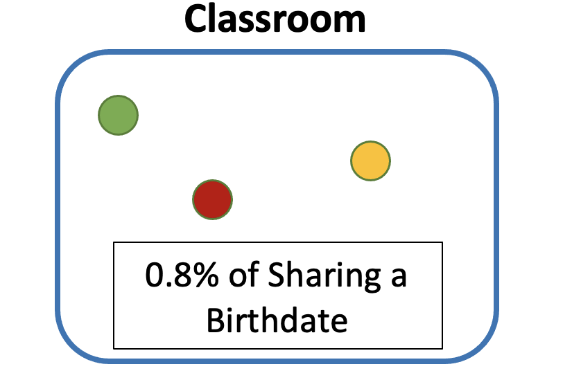 As more students enter the classroom, the probability of sharing a birthday will increase drastically! For many people, the Birthday Paradox seems very illogical - especially when you find out that with 23 people in a room, there is a 50% chance that two people will share the same birthday. But once the pattern and explanation is given, the problem seems to make more sense.