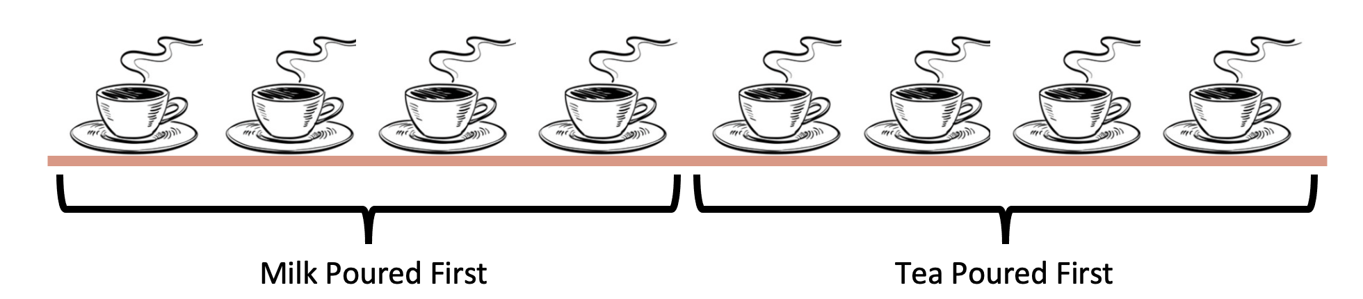Fisher, the statistician, goes on to explain ideas on how we could test whether this lady’s belief is correct. In his proposed test, he said to offer the lady 8 cups of tea, 4 of them being milk then tea, and the other 4, tea then milk. She would be told that 4 of them were prepared in the “proper” way and that her task was to correctly label them. With all of this in mind, we can dive into the analysis of what is happening.