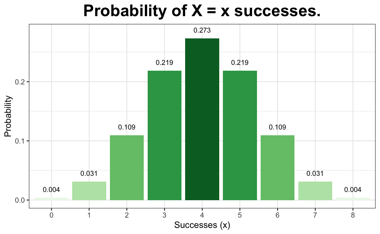\[ P(X=x) = \binom{8}{x} p^x(1-p)^{8-x} \]